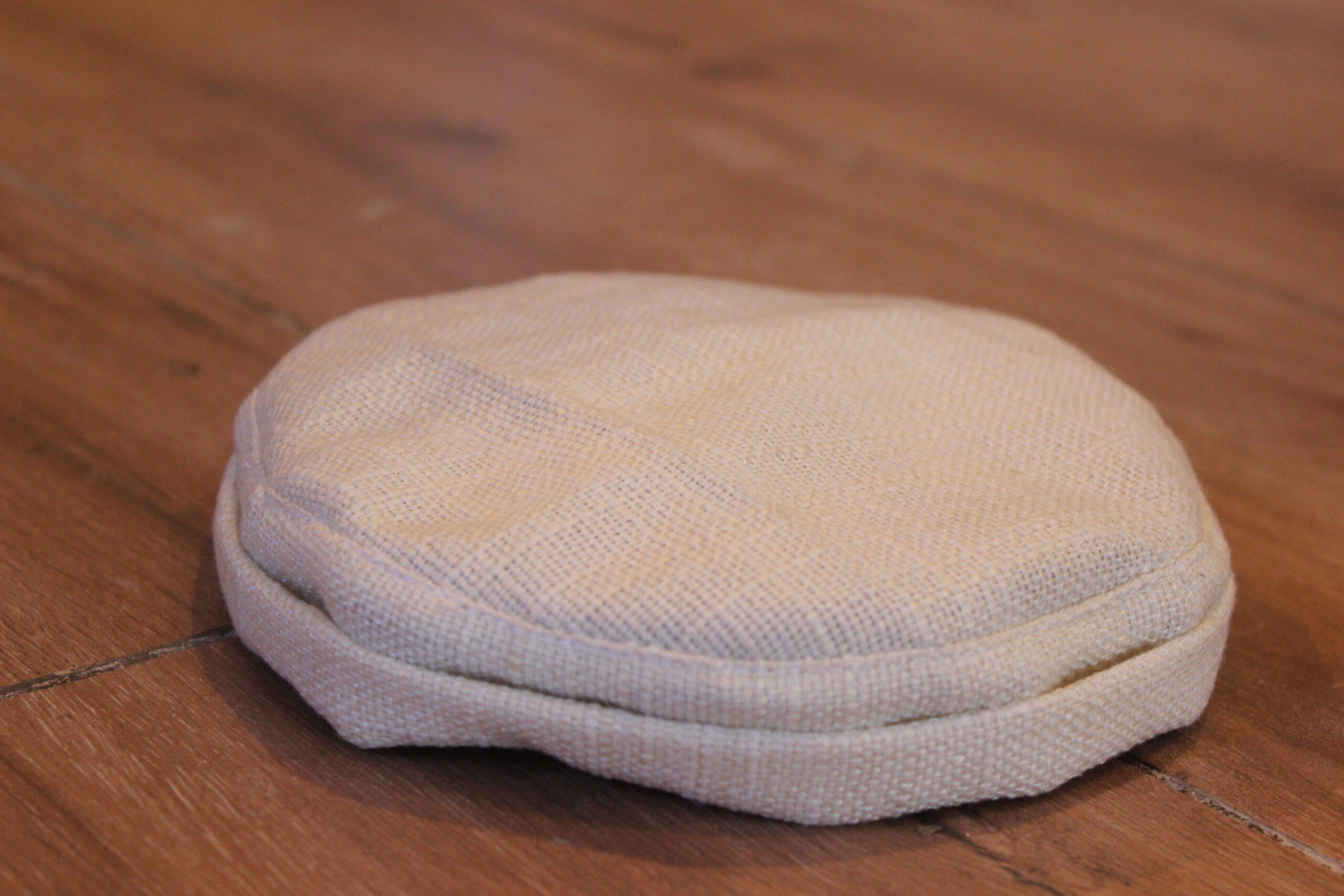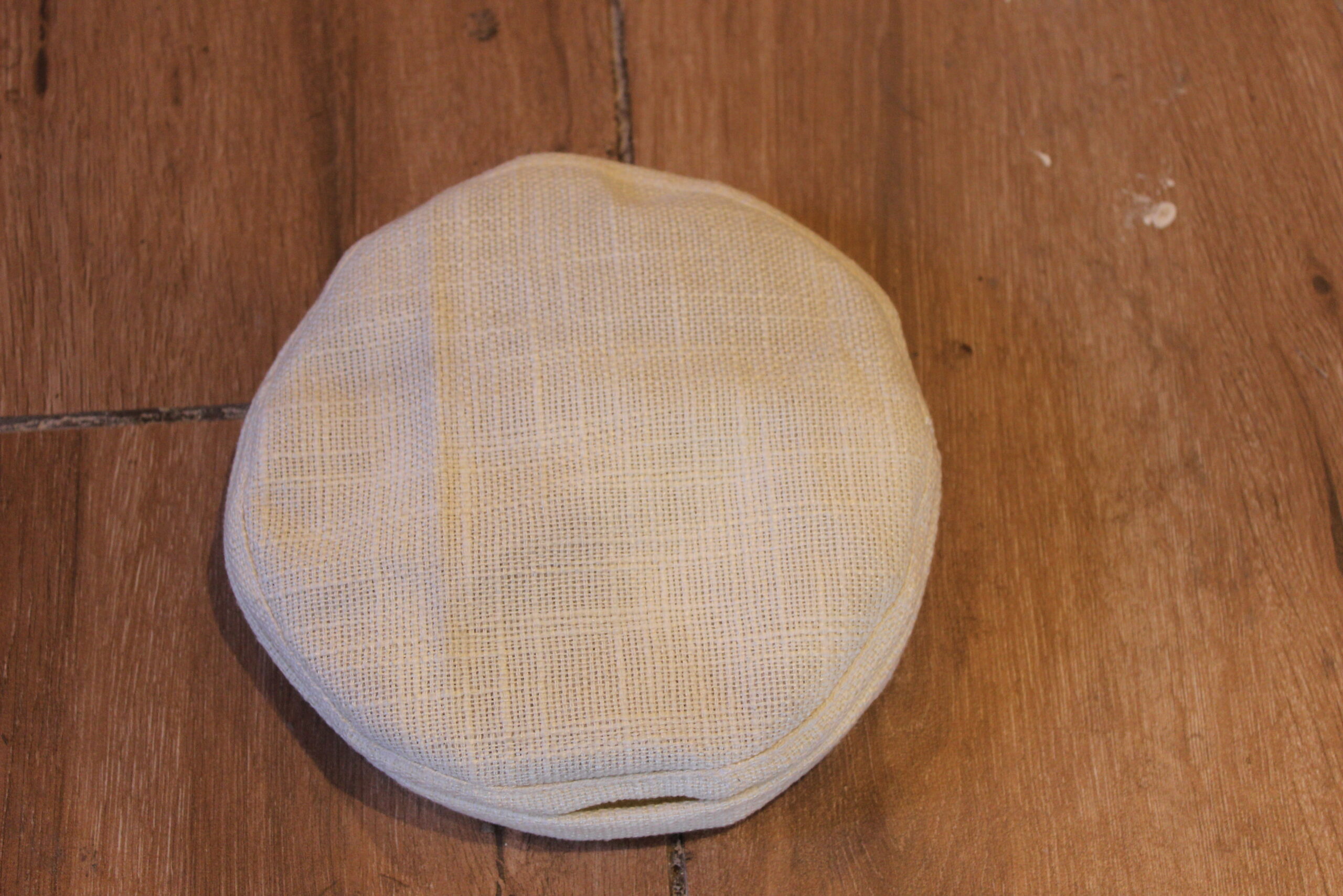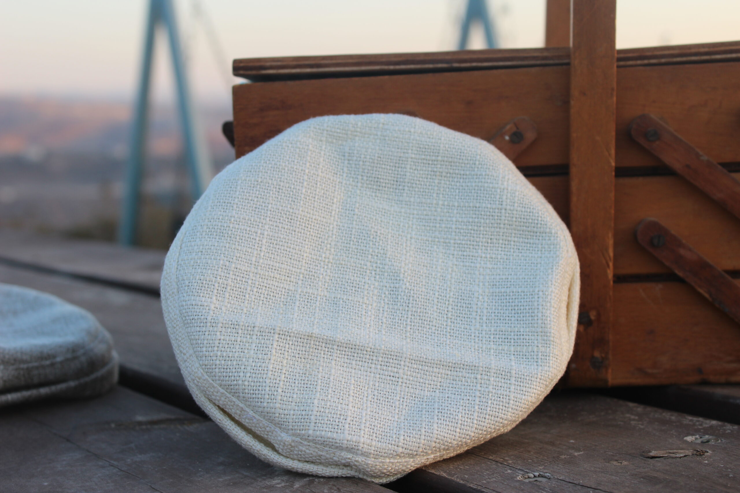 כיפה מבד בייסיק בצבע שבין לבן לשמנת, מבד שתי וערב מחמיא.